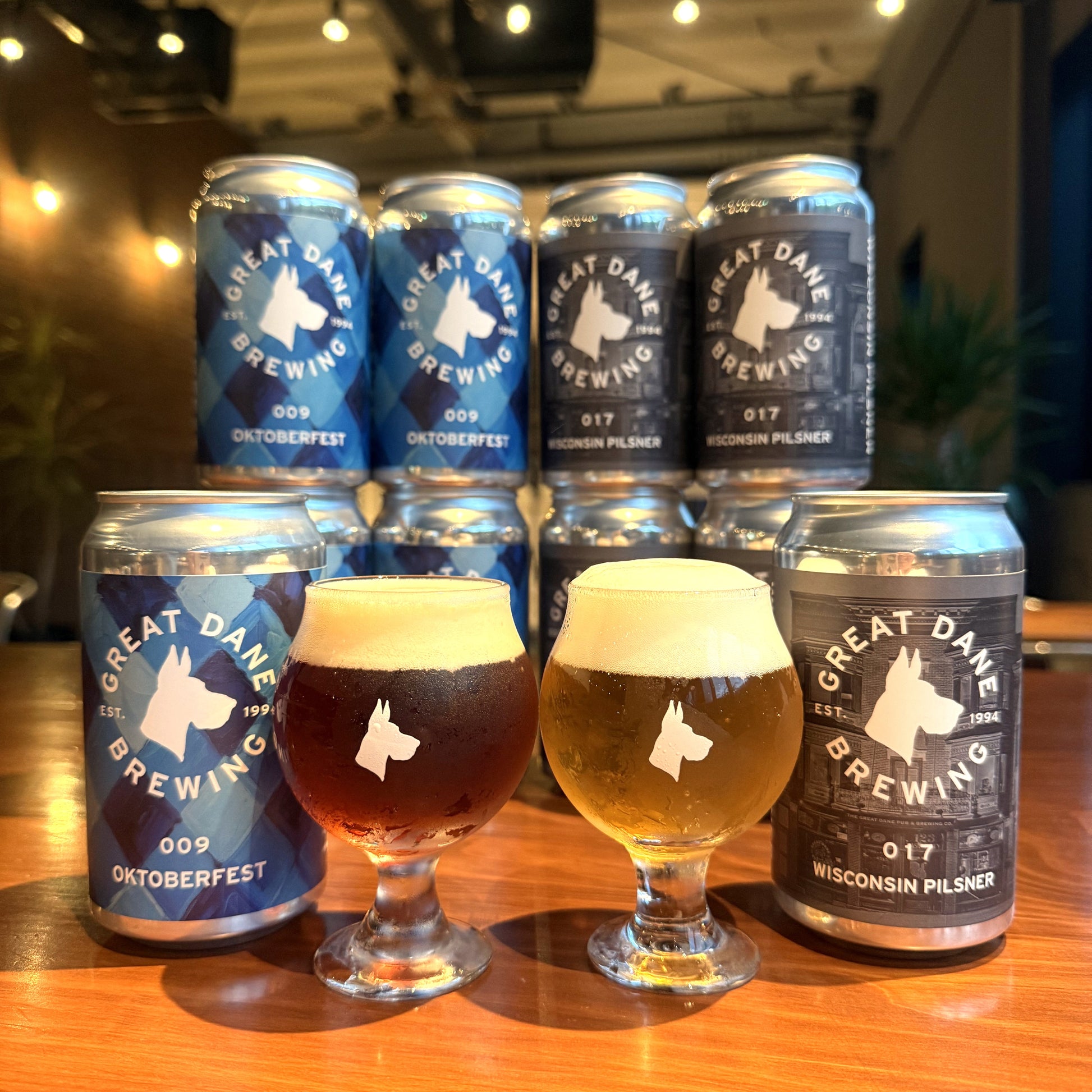 季節・数量限定の特別BOXです。ビールの秋の風物詩「OKTOBERFEST」と、グレートデーンUSAの大人気ビール「WISCONSIN PILSNER」を各5缶、さらに通常販売のないロゴ入りテイスティンググラス(約150ml)を2脚添えてお届けします。